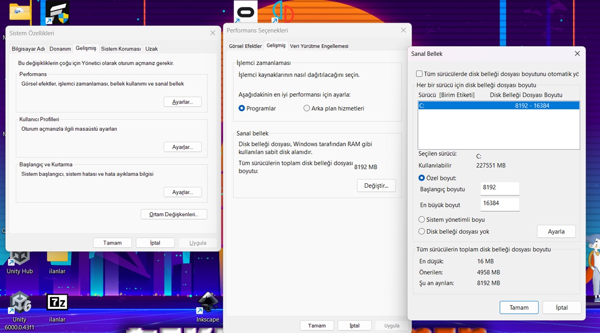 Windows, RAM yetmediğinde sabit diskinizde geçici bir bellek dosyası oluşturur. Bu dosyanın boyutu yetersizse oyunlarda hata alabilirsiniz.