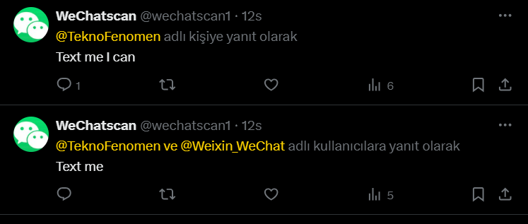WeChat hesabınızı kurmak için yalnızca güvendiğiniz, tanıdığınız bir kullanıcıya QR kodu tarattırın. X veya benzeri açık platformlarda bu tarz şeylere karşı çok dikkatli olun.