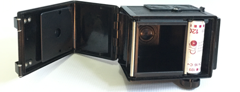 Makine arkadaki kapağından açılmakta ve 120mm roll film kullanmaktadır.