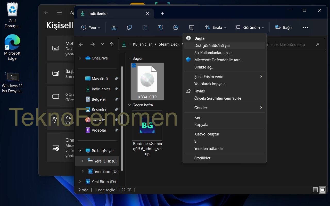 Windows 11’de iso dosyası yazma / oluşturma için;
